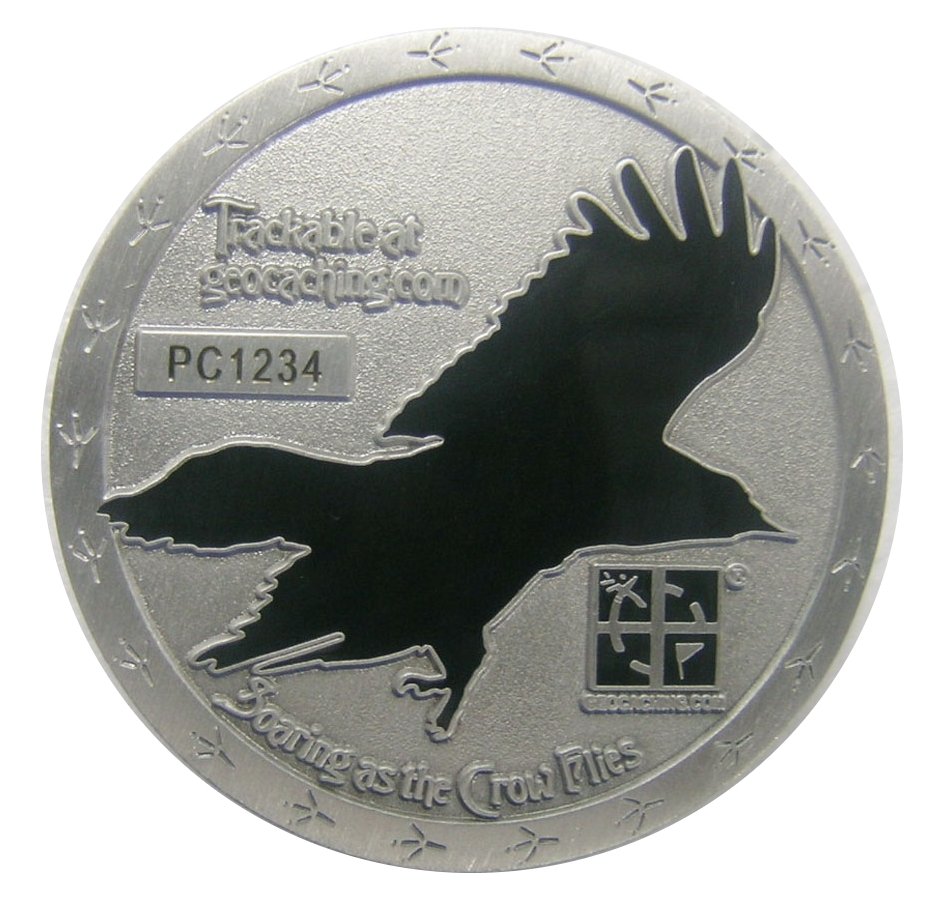Honeychile designed this stunning coin for him and he has chosen to sell some of his second minting in the Geocoin Store. This is a great personal geocoin with a 3D crow on the front in magnificent detail and an enamel crow in flight on the reverse.