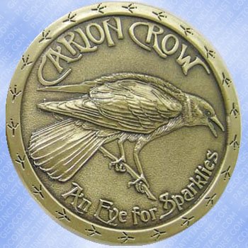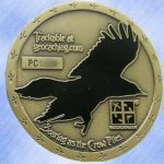 Honeychile designed this stunning coin for him and he has chosen to sell some of his second minting in the Geocoin Store. This is a great personal geocoin with a 3D crow on the front in magnificent detail and an enamel crow in flight on the reverse.