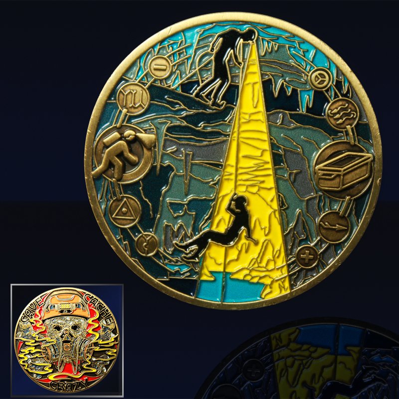 Geocaches are finding their ways into more and more remote and amazing places around the world and caves are no exception. With advances in mapping, underground navigation, and spelunking equipment, safely exploring these remote locales is more accessible than ever. If you're prepared to face the challenge with the right gear and some helpful hands, I highly recommend considering testing yourself. If you've already done so, then this might be the coin for you. If you haven't, this might be the reminder to keep stretching your wings. Explore Your World every day... above and below!