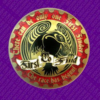 Version 2 of our previous and popular FTF Geocoin. This coin also features the design handiwork of Mr. Chris Mackey. A totally new and exciting design with lots of great detail. Metal detail with imitation hard enamel overlay sets off the overall design.