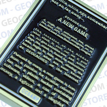 Get into the newest big craze since the X games with this Geocoin!  Ever feel like you're on a galactic adventure while caching?  Do you picture yourself poking through the woods of some distance planet, looking for the hidden base plans someone has left you cleverly hidden beneath a pile of sticks or maybe disguised as a pine cone hanging in the tree?