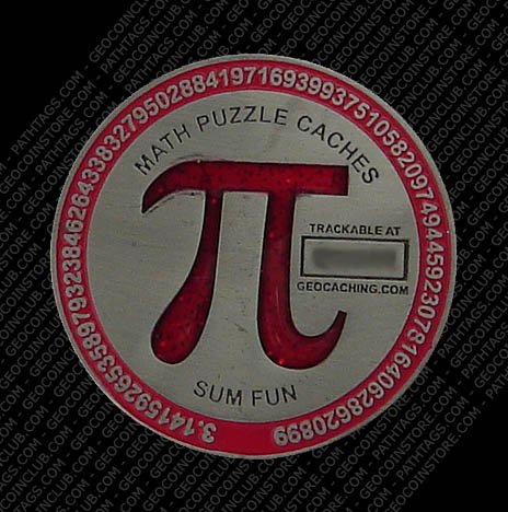 Geocachers use math every day, especially to solve puzzle caches. If you measure the circumference of this coin and divide it by the diameter, you will find the number shown on the front of the coin…pi.