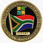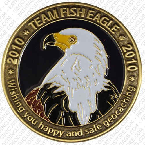 Fish Eagle is a Groundspeak Reviewer from South Africa.  He came to us to see if we could refresh his personal geocoin design from 2006.  We of course said yes, and the Fish Eagle 2010 is here!  We made a very small run in three metals for our webstore in Shiny Gold, Antique Bronze, and Antique Silver.  Fish Eagle has received his own version in Shiny Nickel, so you'll have to contact him if you'd like one of those.